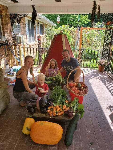 Starting our homestead, we felt insecure – the same lack of confidence in our ability to grow lingered. But EVERYTHING has now changed. We have had booming bumper crops and we are so pleased how the guidance of Build it Up has helped us surpass our wildest expectations. Before we joined the program, we read about a family who had grown 500 pounds of food the previous year. We thought, if we could EVER grow even close to 500 pounds of food, it would be a MIRACLE. As we write now (August 14th), we have harvested 551 pounds of produce, with more to come from our summer and fall garden.