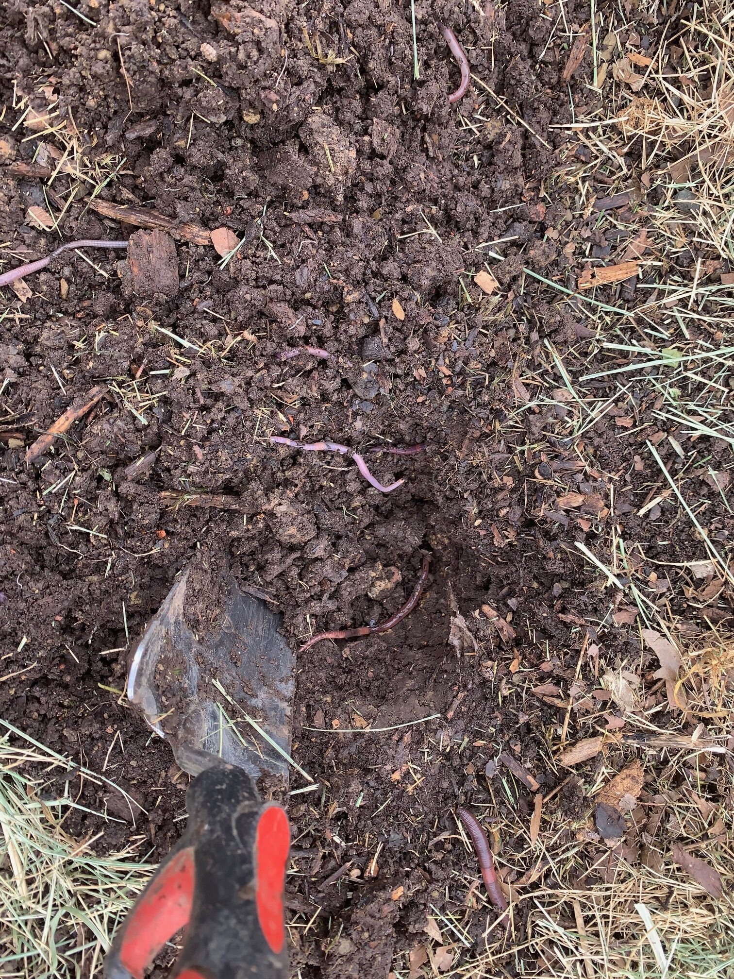 I use the no-till method of gardening and add compost each year. Last week when I dug the holes for my tomato plants, the number of worms I saw was astounding (photo 8). Initially, I told myself that this was a good situation, but now I am having second thoughts. I worry that I might have a jumping worm problem. I plan to contact one of the UT Extension Washington County agriculture agents to obtain a verdict. Fingers crossed….