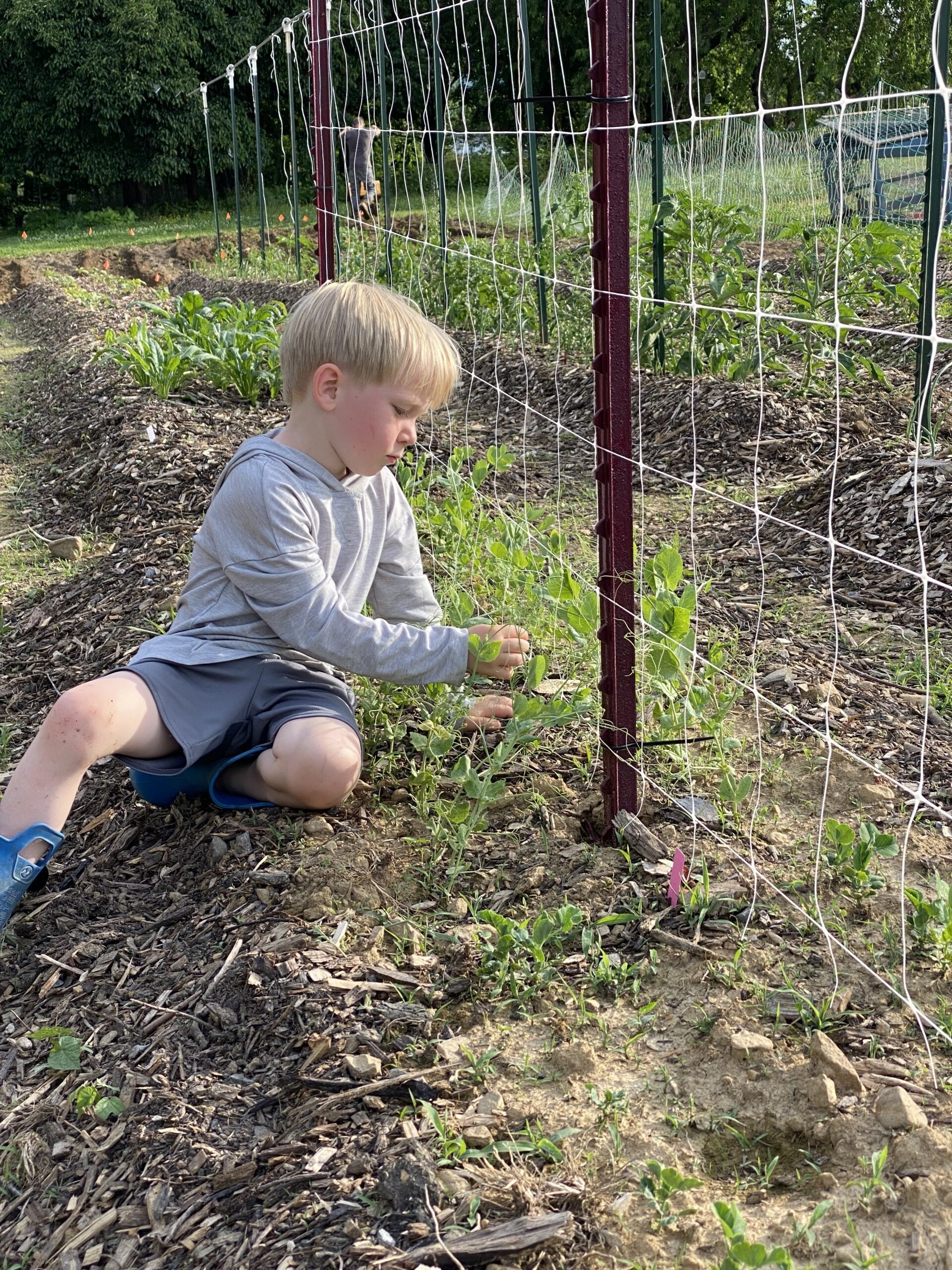 But the most rewarding thing about gardening this year has involved our young children – watching as they learn to plant sets, help with tilling, pull weeds, pick Japanese beetles off of cabbages (and then pour them and the soapy water onto the ground), and enjoy veggies straight out of the garden. We didn’t cook a single pea this spring – our kids ate every one straight off the vines. Our one year old discovered tomatillos, stomped all over our young corn plants and tried to pick every tomato before it turned red. Green beans were always a struggle at dinner time until the boys picked two foot long beans off our long bean vines, and now they walk around the house munching on raw green beans throughout the day. Our five year old even invented a car game called “find food” where they point out different types of food while we are driving around (soybeans, tomatoes, corn, cows! …). They’re learning about where food comes from and starting to identify plants and foods while they’re still growing. This has been the greatest, most fulfilling aspect of our gardening journey, and one that will have the farthest reaching reward.