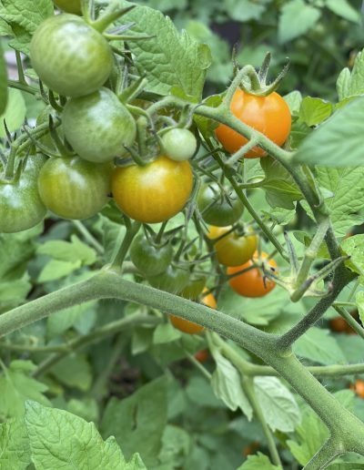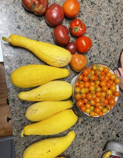 We have a really unusual space to try and garden. Our home backs up to the Cherokee National Forest so we have loads of trees and we are on the side of a rather steep hill. There is virtually no flat space on any of our property. On top of that, we are surrounded by huge, old trees that provide lots of beauty and shade (which is not super great for gardening). Because of this, we had to be careful with our plot selection. We didn’t really know what would take and what wouldn’t so we selected 4 spots. One retaining wall garden for (mostly) herbs, one flat-ish spot behind the house, one spot that was terraced next to the house (and had the best sunlight and no tree overhang), and one at the front of the property (but close to some big trees). Of our 4 spots, only 2 really took off – the retaining wall herb garden and the side terraced garden. The plot behind the house did virtually nothing. Almost everything we planted there failed though we did get some onions and we are still holding out hope for the carrots. The front garden with the melons fell victim to roving herds of deer who are unafraid of our pug puppies. And, really, not enough sunlight once the leaves filled the trees. Our side garden that is terraced is BEAUTIFUL. Loads of bright, fresh, tomatoes and squash and cucumbers. Once we have finished with these, this is where will will focus our efforts going forward. Our herb garden is beautiful as well – we have loads of basil, mint, rosemary, lavender, and sage. It smells like a dream!