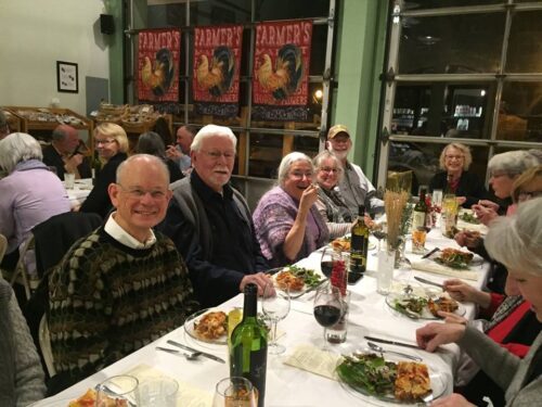 Folks enjoying the food at an Italian themed 100 Mile Dinner.