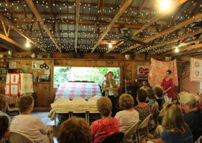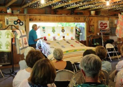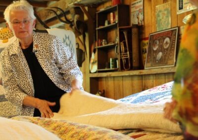 You will see dozens of unique handmade antique quilts, hear old family stories, and you’ll eat good too, thanks to Patricia Lynch’s summery fresh cooking at Farmhouse Gallery and Gardens, Unicoi TN.